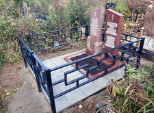 Клиент пожелал сохранить старое надгробье, а потому его мы попросту переустановили, параллельно с этим установив по периметру участка простую металлическую оградку. Все работы велись строго по уровню, а потому перекосы ограждения или надгробья абсолютно исключены.