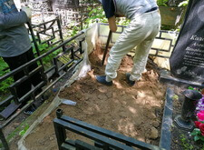 После измерений и согласования макета надгробья с клиентом возвращаемся на участок.