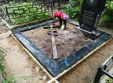 В данном случае нам предстояло благоустроить могилу после дозахоронения. Так выглядел участок перед началом проведения работ: один гранитный памятник, православный крест, простое металлическое ограждение.
